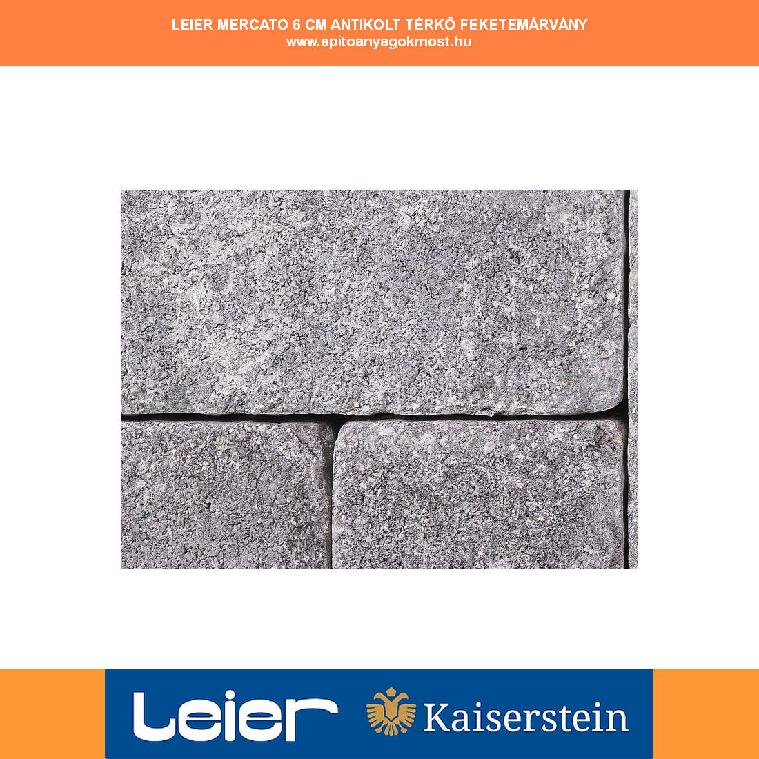 LEIER Mercato 30 x 20 x 6 cm térkő Feketemárvány
